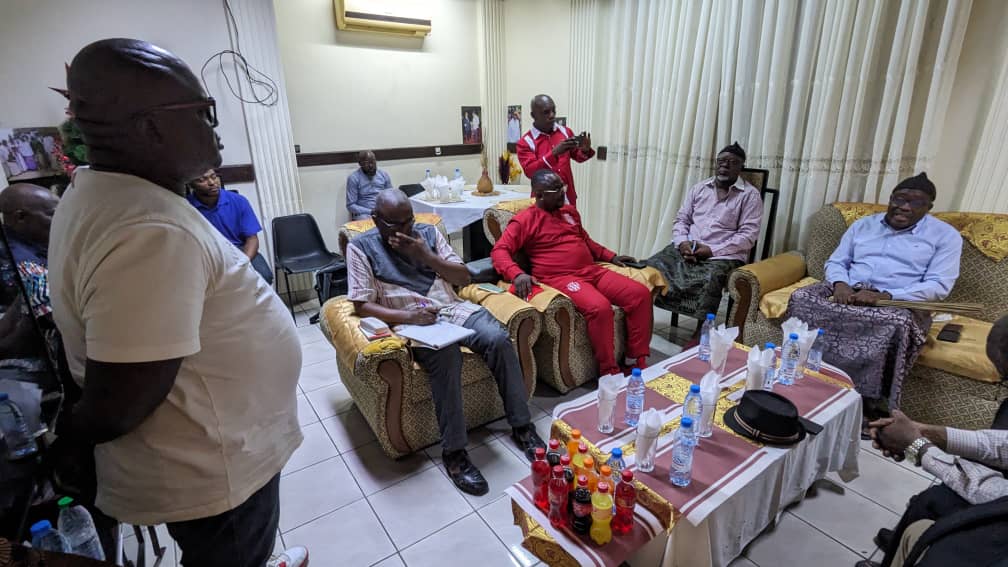 《 Nous sommes ici ce matin ( 1er Février 2024 ) , pour apporter notre soutien au caïman club de Douala…Nous avons fait une promesse d’accompagner le caïman tout au long de la saison sportive qui va bientôt commencer et nous avons voulu avec les dirigeants du caïman , échanger autour de comment est-ce que nous allons pouvoir échelonner cette compétition…ce matin (1er Février 2024 ) , nous avons donné une première partie et nous avons fait la promesse de donner le reste au courant de la saison sportive. Nous lui avons fait la promesse de d’accompagner l’équipe tout au long de la saison 》 a précisé sa majesté Alain Dissake Mouangue, chef du village Bonamoukouri- Bonakamouang dans le Canton Akwa.