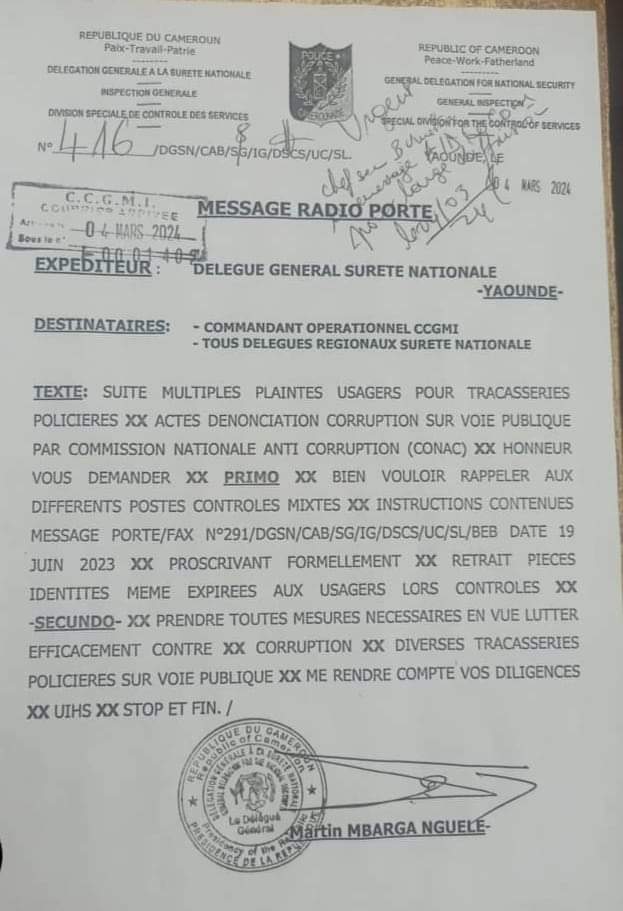 Actualité Infos a la une Société Martin Mbarga Nguele rappelle l’interdiction de retirer les pièces d’identité aux usagers proxima@proximainfo.net 6:32 am Partager sur : Vues : 1 409 Le délégué général à la Sûreté nationale fait ce rappel dans un message adressé à ses collaborateurs des services centraux et régionaux de la police. Voici le communiqué Publicité Publicité Proxima Info Publicité PartagezTweetezPartagez0 Partages Post navigation Previous: JIF 2024 : Entretien avec Claire Natacha Njoh Ellong .Next: Douala – JIF 2024 : Le cas des Femmes dans le contexte conjugal , revisité par la CUD. Plus d'articles Actualité Infos a la une Sport 🇨🇲 Arts martiaux: Le Cameroun termine en tète du classement des nations de l’African Open de Judo « Yaoundé 2025 ». proxima@proximainfo.net 2:23 am Actualité Culture Infos a la une 🇨🇲 LA 110E ÉDITION DE LA FÊTE BATANGA : UN APPEL À LA MOBILISATION proxima@proximainfo.net 6:35 am Actualité Infos a la une Société 🇨🇲 LA 4ème ÉDITION DU FESTIVAL MANGANDO À DOUALA : UN RENDENZ-VOUS CULTUREL À NE PAS MANQUER. proxima@proximainfo.net 3:45 am